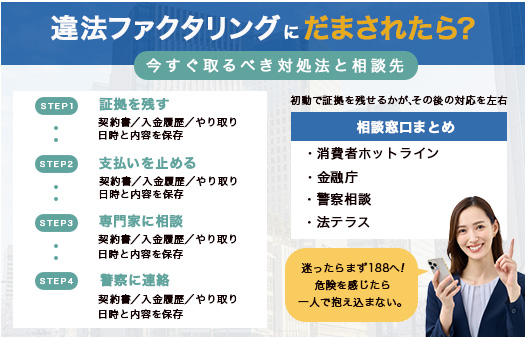 違法なファクタリング業者に騙されたときの対処法・相談窓口