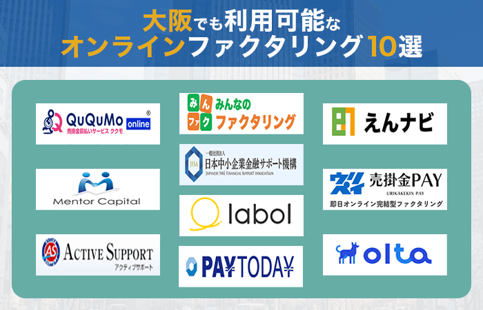 本記事では大阪対応のファクタリング会社20社を、対面契約10社・オンライン完結10社に分けて手数料・入金スピード・買取金額で比較しました。