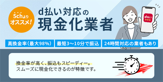 5chよりもおすすめのd払い対応現金化業者