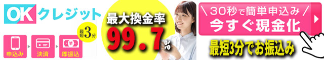 OKクレジットはバンドルカードを最大99.7%の高換金率で現金化してくれるおすすめの買取業者です。買取率が高いのはもちろん、最短3分という早さで現金化に対応しています。