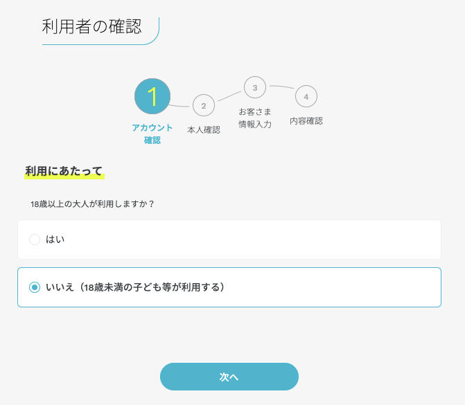 ahamoの利用者の確認では”契約者と利用者が異なる”を選択