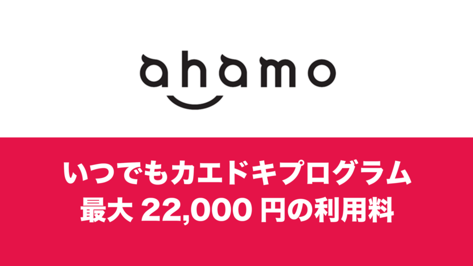 - ahamoのでいつでもカエドキプログラムを利用すると、最大22,000円のプログラム利用料をスマホ返却時に支払う必要がある