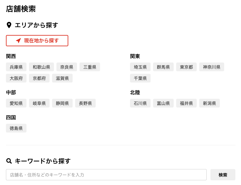 ジョーシン公式サイトの店舗検索ページ