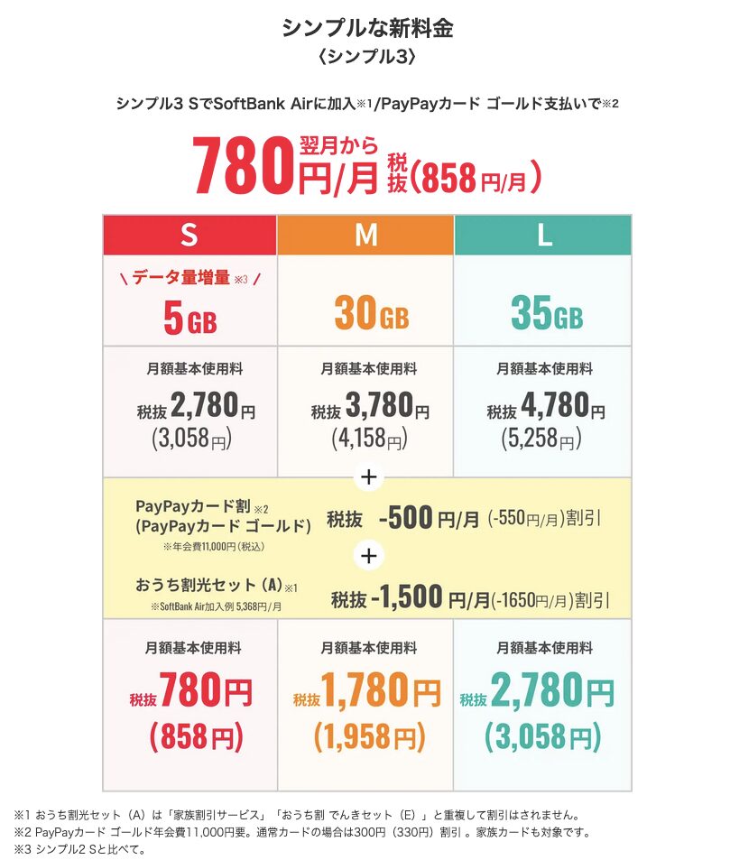 ワイモバイルは2025年9月25日より、割引適用前の料金としては実質的な値上げとなる新プラン シンプル3 S/M/Lの提供を開始します。