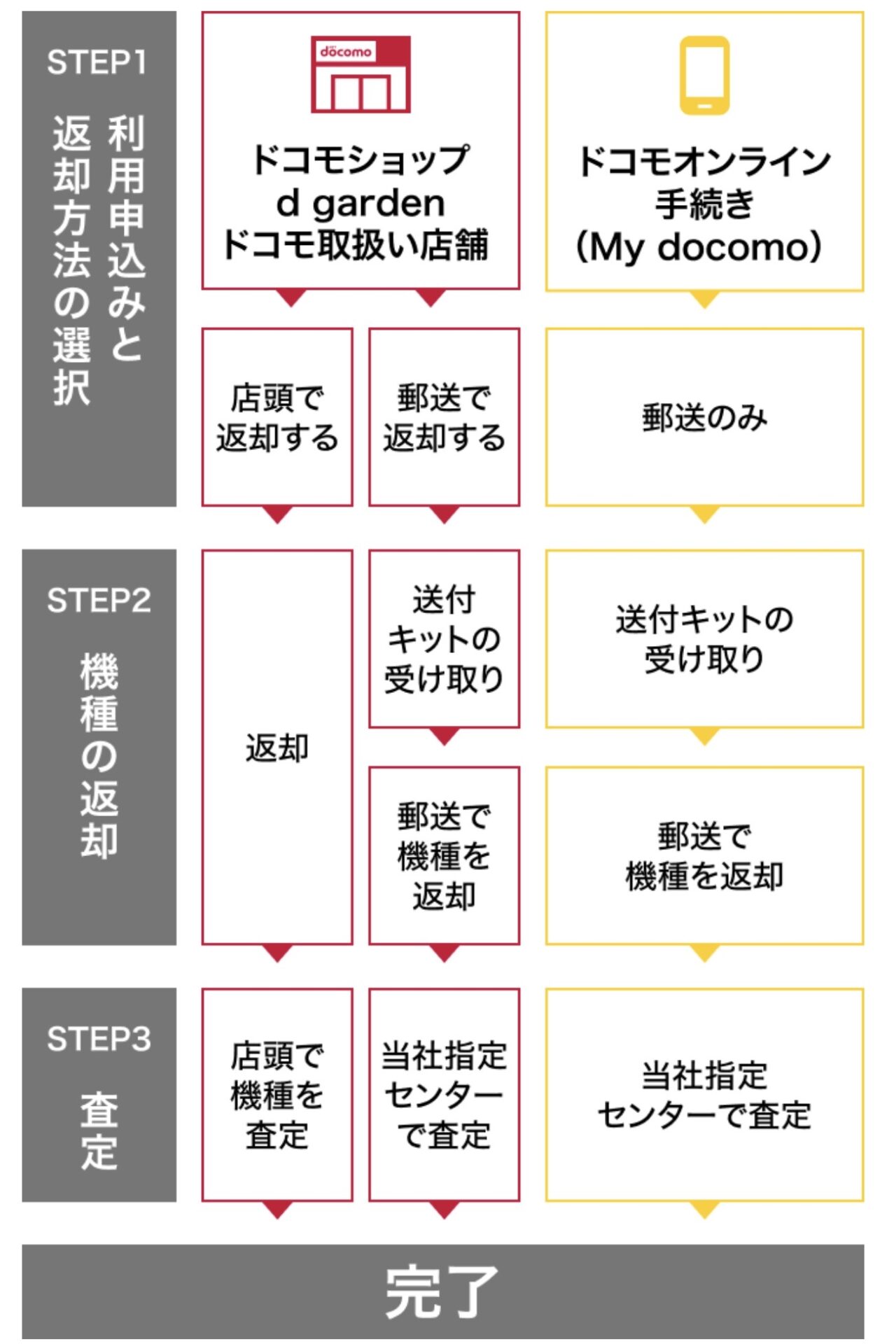 ドコモオンラインショップやahamoサイトで購入した場合の返却方法は郵送のみ