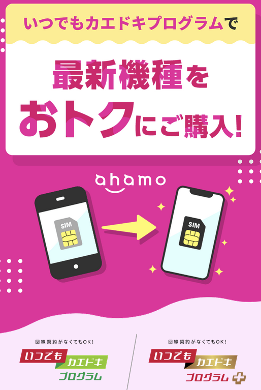 新しいスマホもいつでもカエドキプログラムを適用して購入できます。