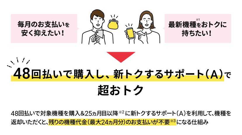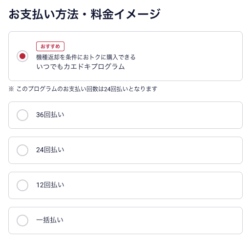 - 24〜48ヶ月目:残価(機種や契約種別ごとに異なる)