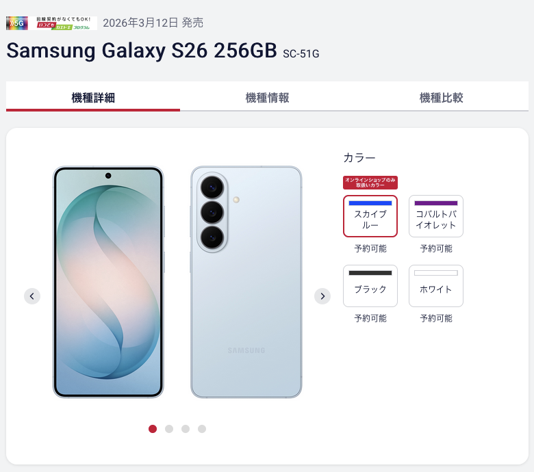 Galaxy 26シリーズが2026年3月12日にドコモ、au、ソフトバンク、楽天モバイルの4キャリア、一部格安SIM、Samsungオンラインショップ等で発売されました。