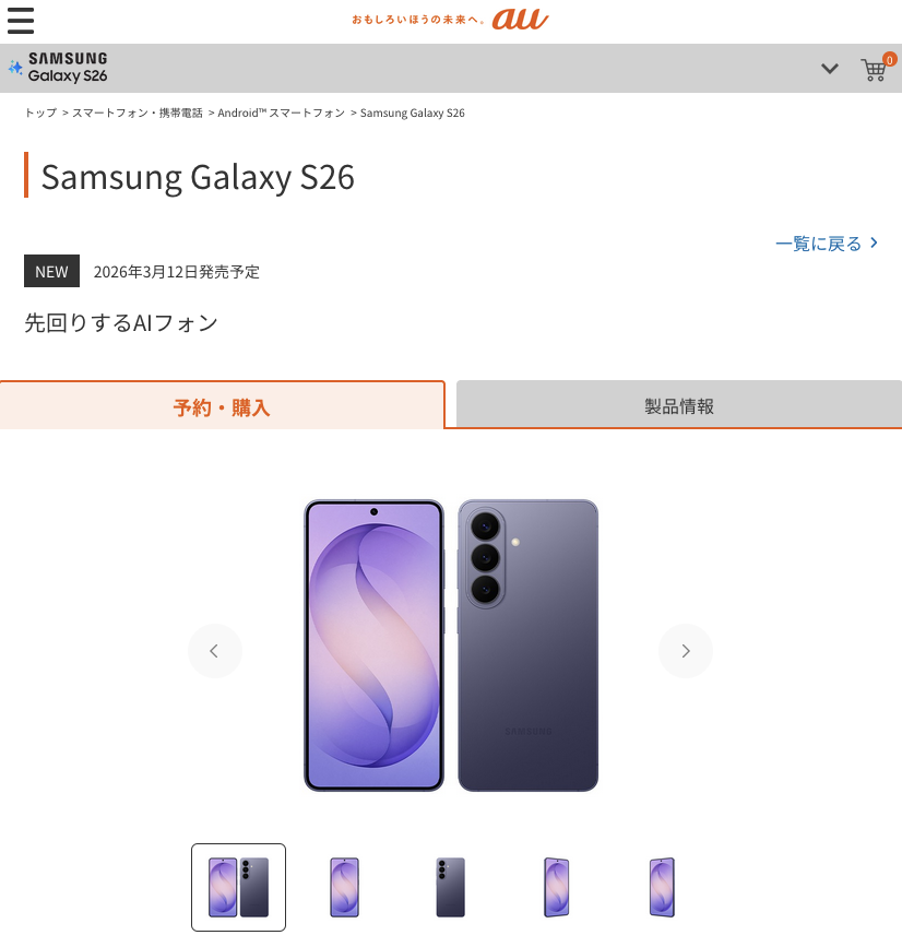 auでGalaxy S26がMNP一括130,900円〜