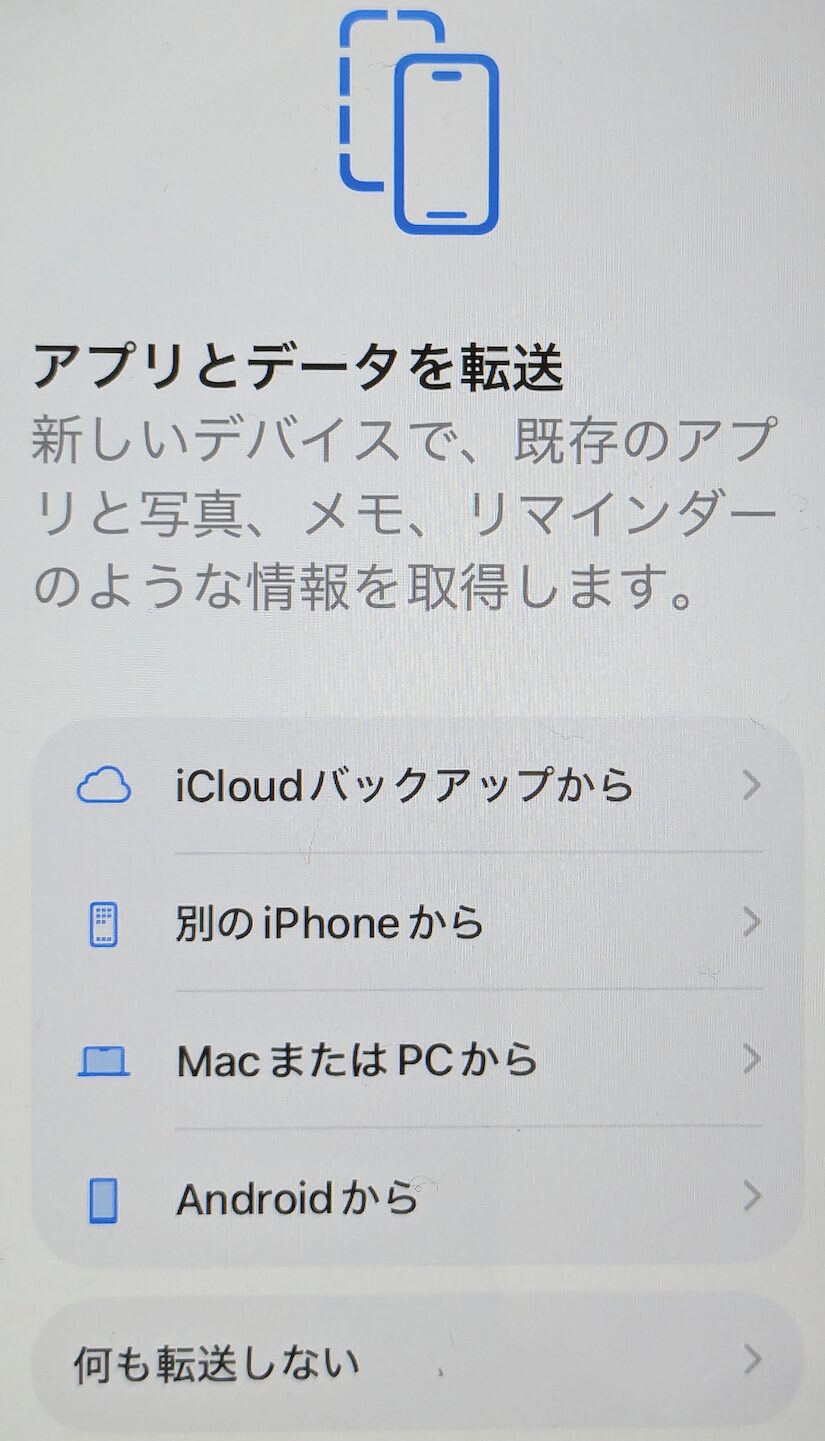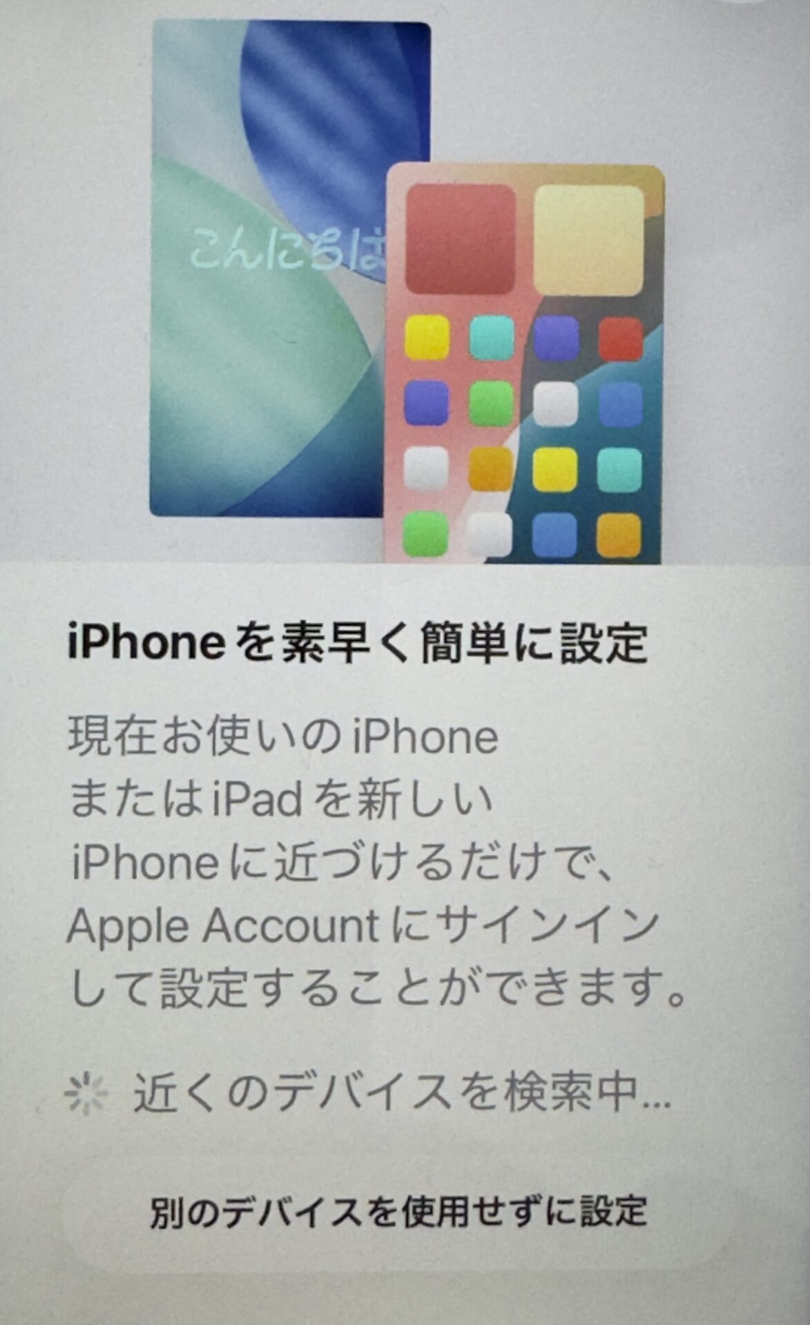 • iPhone17の初回起動時に表示されるクイックスタートでは、アプリやデータのみを転送したほうが安全