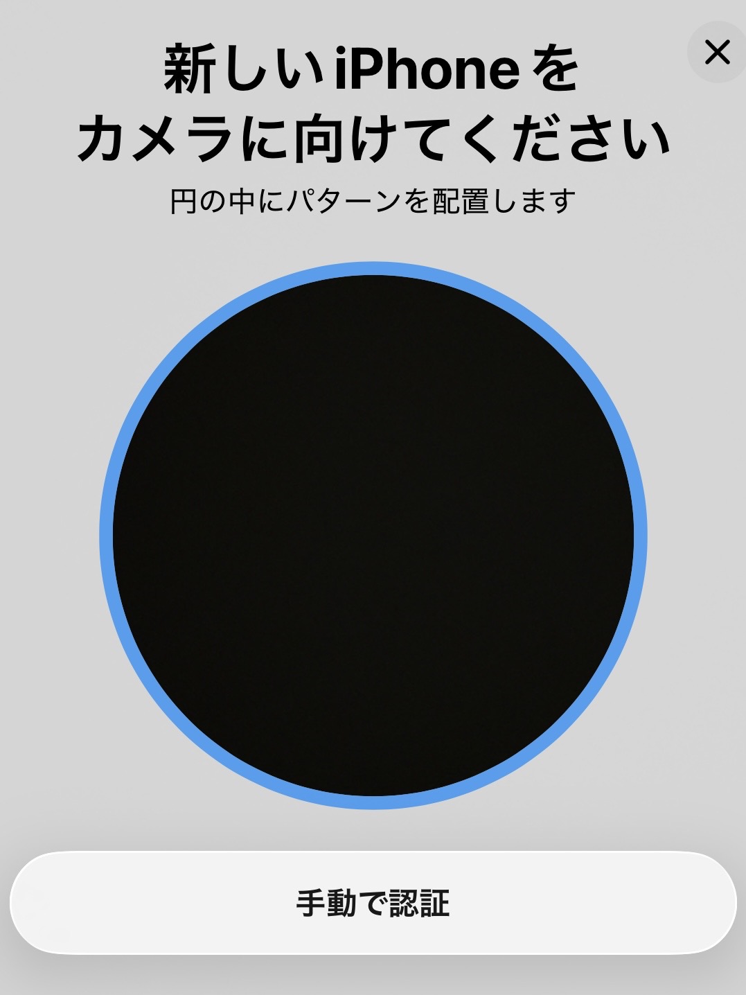 iPhone17にパターンが表示されたら、古いiPhoneのカメラを向けて認証する