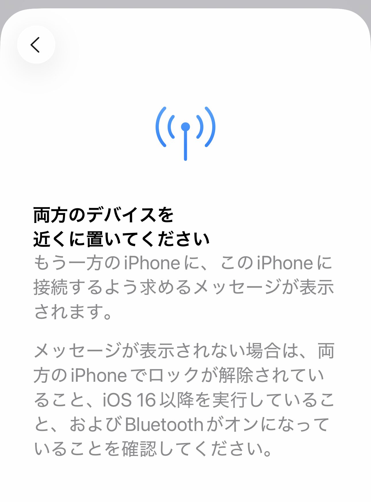 データの転送が完了するまでの間は、2つのiPhoneをそばに置いたままにしてください。