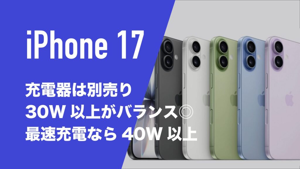 iPhone 17の充電器は別売りでついてない。おすすめのワット数は?20Wで良い?