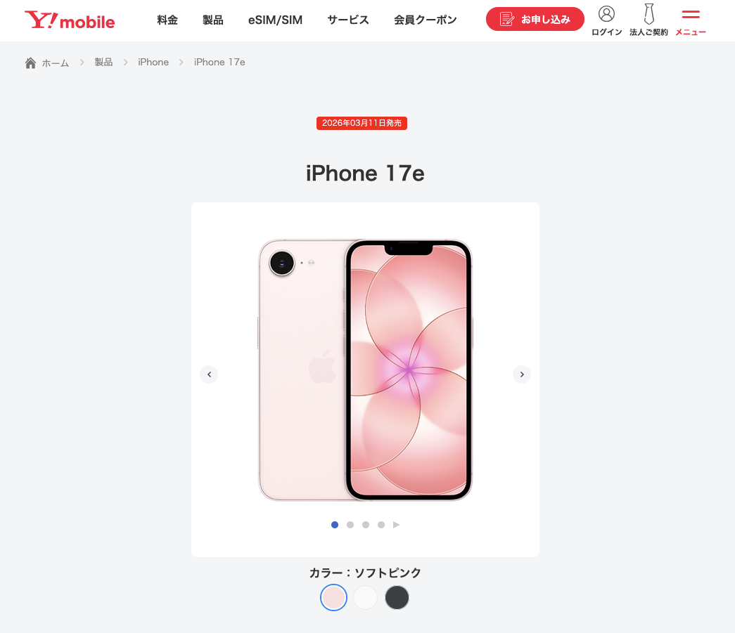 • 低価格モデルのiPhone 17eが2026年3月4日にワイモバイルで予約販売を開始した