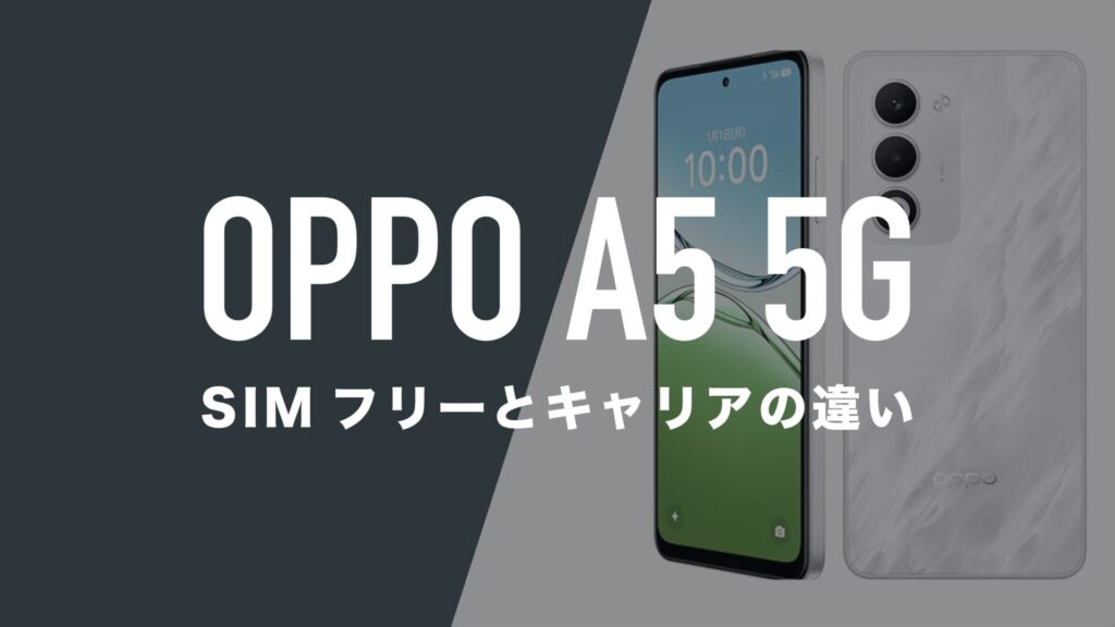 目次 OPPO A5 5Gが2025年12月にSIMフリーとキャリアで発売された OPPO A5 5GをMNP乗換 x 一括で購入 OPPO A5 5Gが発売される場所 OPPO A5 5Gが発売されるキャリア SIMフ … 続きを読む OPPO A5 5GのSIMフリー版とキャリア版に違いはあるのか。