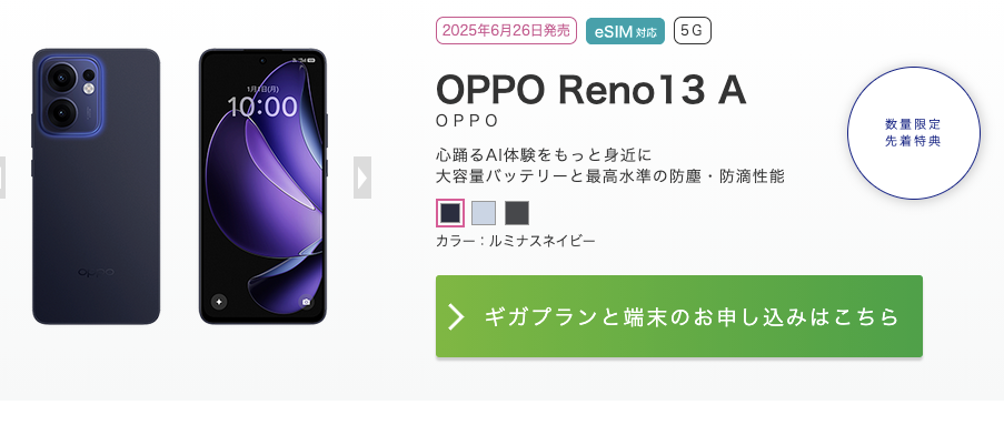 引用元:https://www.oppo.com/jp/newsroom/press/reno13a-release/