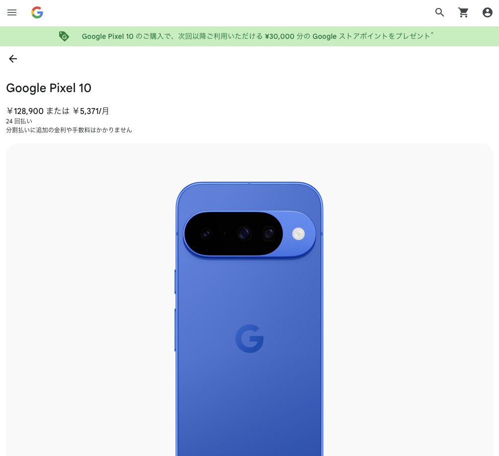 GogoleストアでのGoogle Pixel 10の販売価格は定価での販売がメインです。