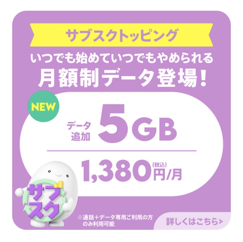5GBのサブスクトッピングは月額1,380円