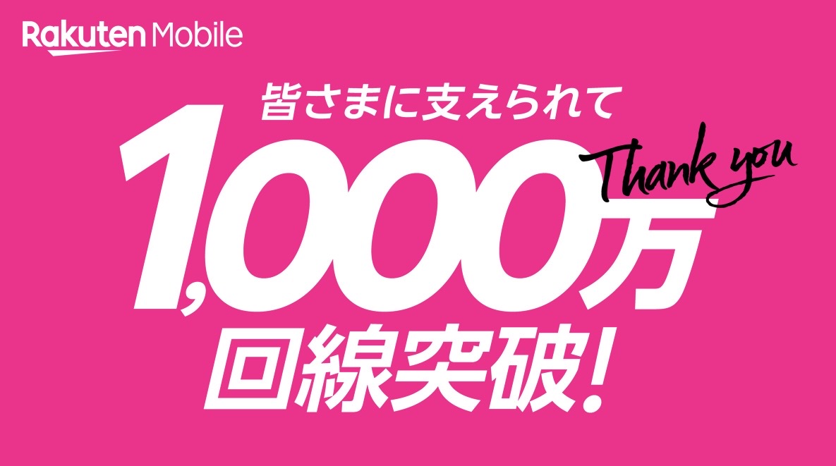 楽天モバイル株式会社(以下「楽天モバイル」)は、2025年12月25日(木)を以て、契約数が1,000万回線を突破したことをお知らせします