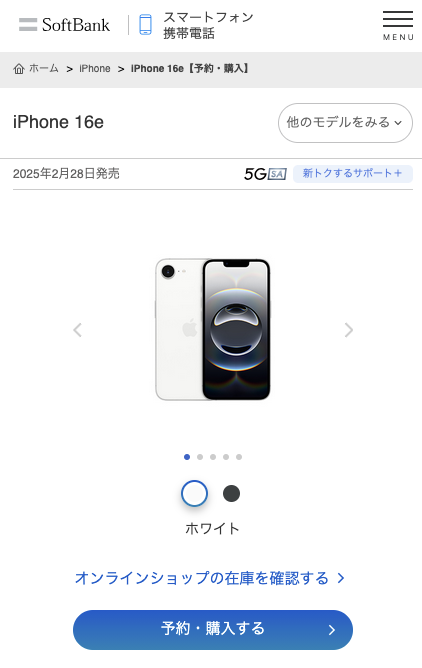 iPhone 16eが正式発表された翌日の2025年2月21日午後10時に、ソフトバンクを含む国内4キャリアとApple Storeで予約受付を開始しました。