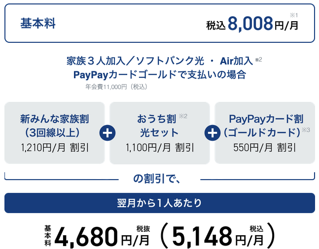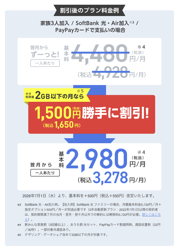 - 改悪 >> PayPayカードを持っていないとメリハリ無制限+と比べて値上げになる