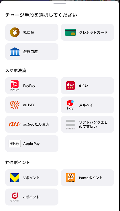 ![]() ソフトバンクまとめて支払い | 10万円/月 | 電話料金と合わせて支払える。ソフトバンク契約者だけが使える。 利用上限はユーザーの契約状況によって変わる。 |