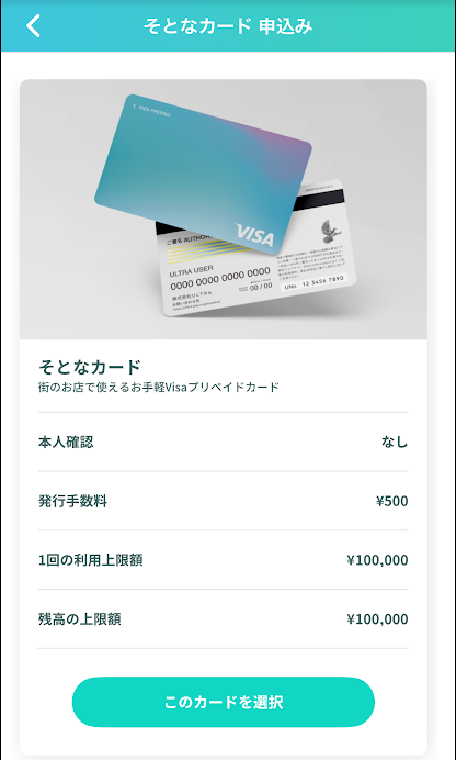 そとなカードは、本人確認書類の提出など面倒な手続きもなく発行できます。